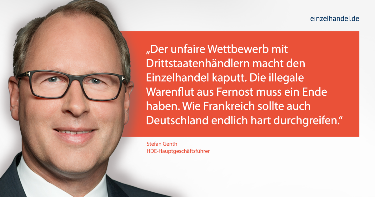 | Mit Blick auf die aktuellen Entwicklungen in Frankreich bekräftigt der Handelsverband Deutschland (HDE) seine Forderung nach einem konsequenten Vorgehen gegen den unfairen Wettbewerb mit Plattformen und Händlern aus Drittstaaten. Der HDE appelliert an die Bundesregierung, sich für einen fairen Wettbewerb in Deutschland und Europa einzusetzen und systematische Regelverstöße nicht länger zu tolerieren.