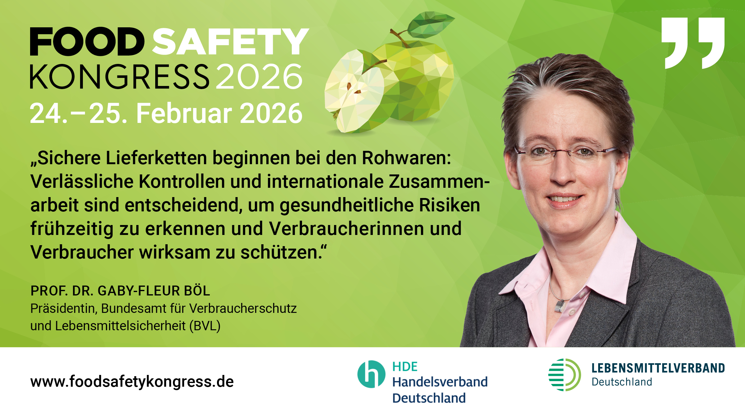 | Mit großer Vorfreude erwarten wir Prof. Dr. Gaby-Fleur Böl, Präsidentin des Bundesamtes für Verbraucherschutz und Lebensmittelsicherheit (BVL), auf der Bühne des kommenden Food Safety Kongresses. Die Grundlage sicherer Lieferketten wird bereits beim Ursprung der Rohwaren gelegt. Umso wichtiger ist es, auf wirksame Prüfmechanismen und ein starkes internationales Engagement zu setzen, um Risiken frühzeitig zu erkennen und die Gesundheit der Verbraucher zu gewährleisten. Buchen Sie jetzt Ihren Platz und freuen Sie sich auf fundierte Analysen und praxisnahe Impulse einer renommierten Expertin, die das Feld der Lebensmittelsicherheit maßgeblich prägt.