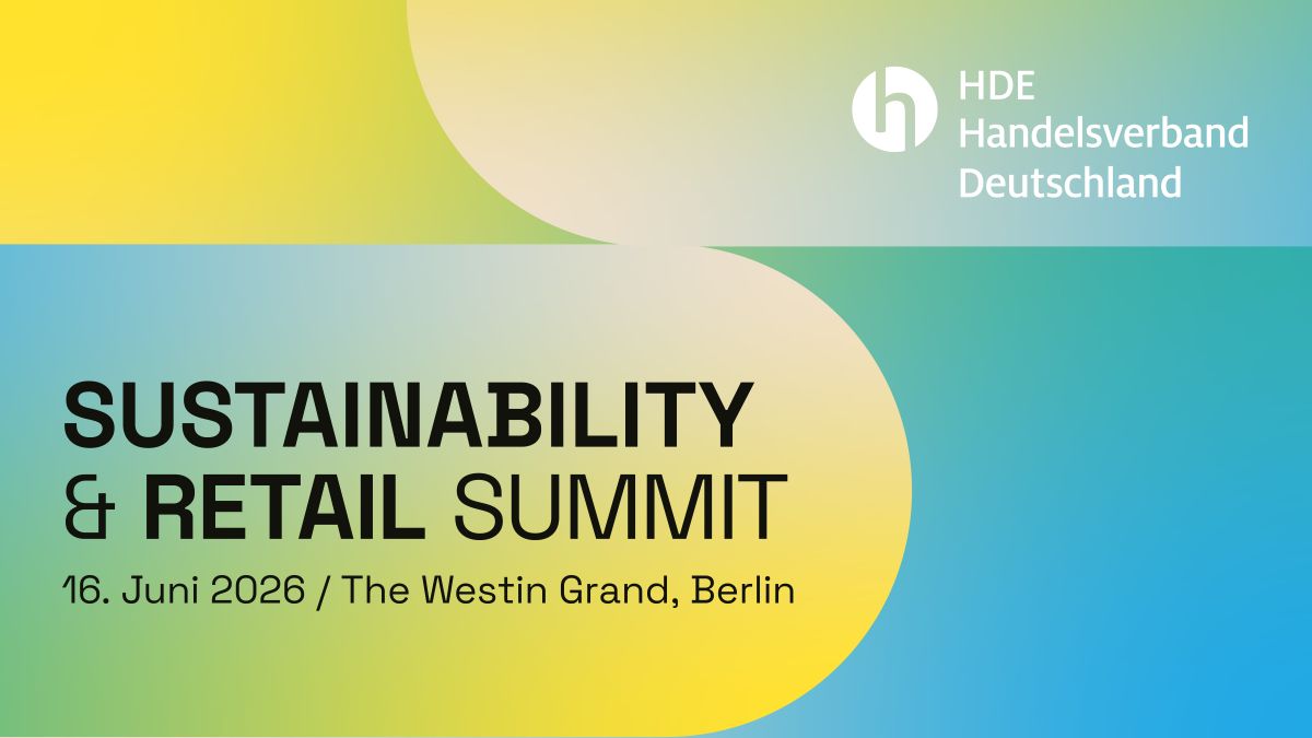 | Der Handelsverband Deutschland freut sich, im Jahr 2026 ein neues Event vorzustellen: den Sustainability and Retail Summit. Unter dem Motto „Nachhaltigkeit gestalten. Regulierung verstehen. Chancen nutzen.“ bringt die Fachkonferenz führende Vertreter aus Handel, Politik, Wissenschaft und Zivilgesellschaft am 16. Juni 2026 in Berlin zusammen. Im Fokus stehen ressourcenschonende und kreislauffähige Geschäftsmodelle, soziale Verantwortung entlang globaler Lieferketten sowie menschenrechtliche Sorgfaltspflichten. Denn nachhaltige Transformation im Einzelhandel gelingt nur mit Menschen, die Verantwortung übernehmen und aktiv gestalten. Nutzen Sie die Möglichkeit des Early-Bird-Rabatts und sichern Sie sich schon jetzt Ihren Platz.
