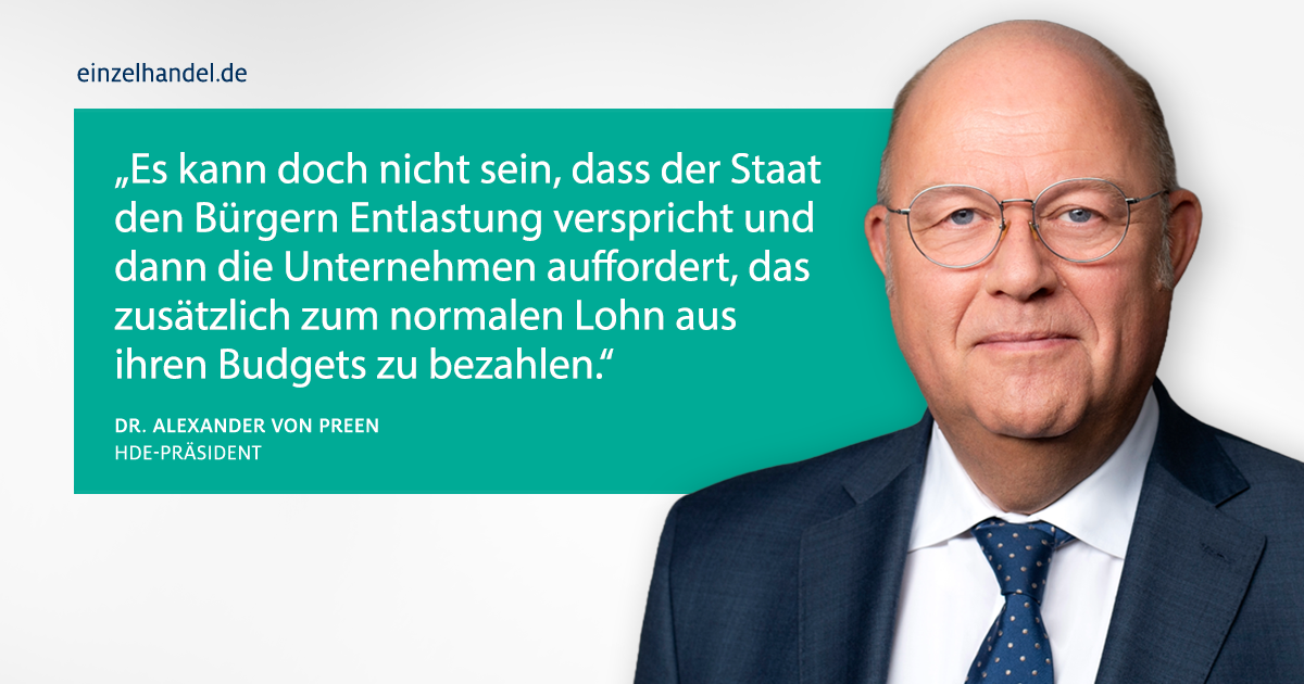 | HDE-Stellungnahme zur Formulierungshilfe zur Umsetzung einer steuer- und sozialabgabenfreien Entlastungsprämie in Höhe von bis zu 1.000 Euro als Ergebnis des Koalitionsausschusses vom 12. April 2026, welche wir am 16. April 2026 fristgemäß im Rahmen der Verbändeanhörung beim zuständigen Bundesfinanzministerium eingereicht haben.