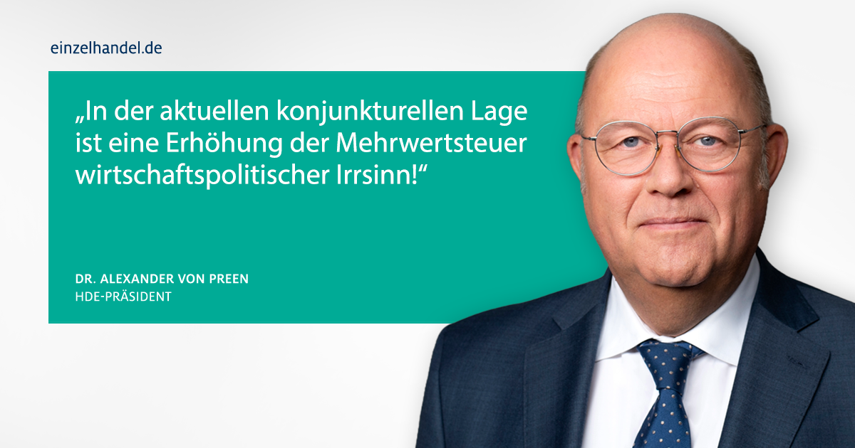 | | HDE warnt vor Folgen einer möglichen Mehrwertsteuererhöhung |  |
